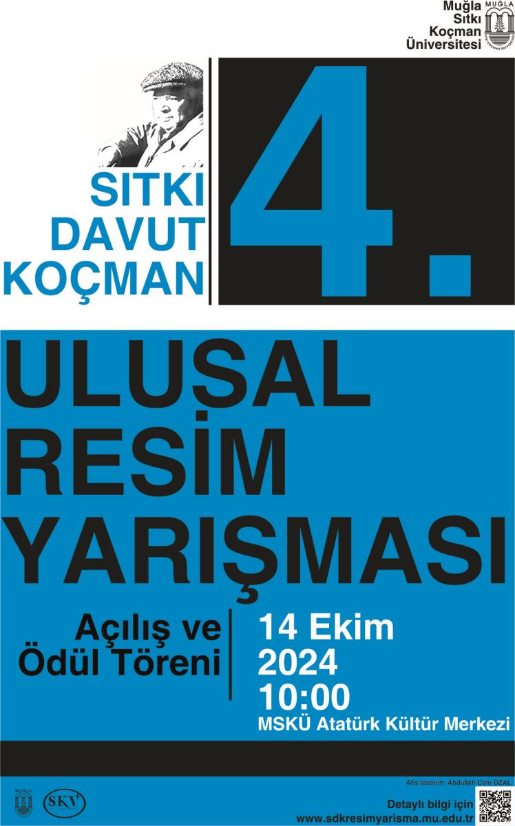 SITKI DAVUT KOÇMAN 4. ULUSAL RESİM YARIŞMASI AÇILIŞ VE ÖDÜL TÖRENİ Sıtkı Davut Koçman Anma Etkinlikleri kapsamında gerçekleşecek olan 4. Ulusal Resim Yarışmamızın Ödül Töreni ve sergi açılışı 14 Ekim 2025 Salı günü Saat 10:00'da MSKÜ Atatürk Kültür Merkezi'nde gerçekleşecektir. Son Güncelleme : 30.09.2025 11:00 Okunma Sayısı : 85